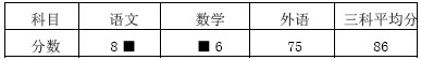 我們知道星星三科成績的平均分是86分,那么三科成績的總分是86×3=258分。從總分中減去外語科的成績75分后,就是語文、數學兩科分數的和。258-75=183分,也就是8A+B6=183.寫成豎式是:
