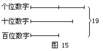 十位數(shù)字不知道是幾,那該怎樣算呢?可是由圖中可以看出,只要從19里減去十位數(shù)字后,那么得數(shù)一定是3的倍數(shù)。你不妨可以假設(shè)十位數(shù)字是0、1、2、……8、9,挨個(gè)地試一下。譬如十位數(shù)字假設(shè)是0,那么19-0=19,19不是3的倍數(shù),這個(gè)不行。十位數(shù)字假設(shè)是1呢,那么19-1=18,18是3的倍數(shù),18÷3=6,那么6就是百位數(shù)字了。別忙,百位數(shù)字是6,那么個(gè)位數(shù)字就是6×2=12,這可不行,因?yàn)?2是兩個(gè)數(shù)字。那就再試一下。十位數(shù)字假設(shè)是4呢,19-4=15,15÷3=5,5×2=10,個(gè)位數(shù)字是10,這也不行。