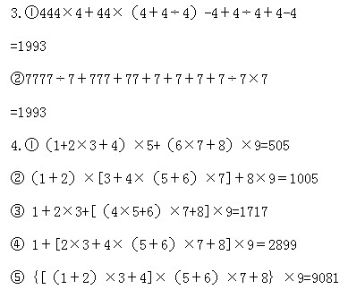 三年級奧數上冊:第十二講 巧填算符(二)習題解答