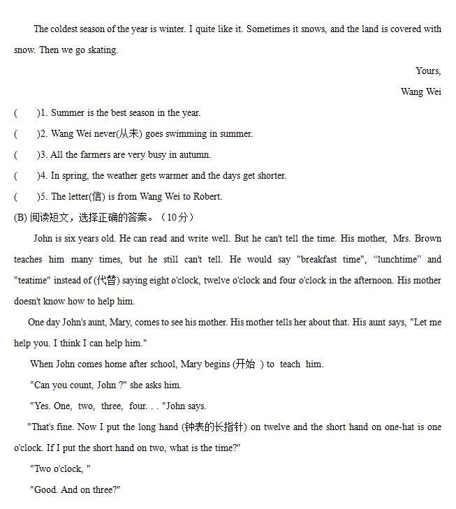 2019年新初一入學分班考試英語模擬題一(圖片版)(4)