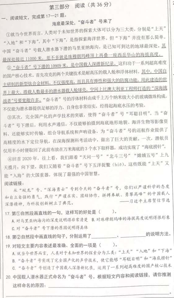 西城區2020-2021學年第一學期五年級語文期末試卷(圖片版)(3)
